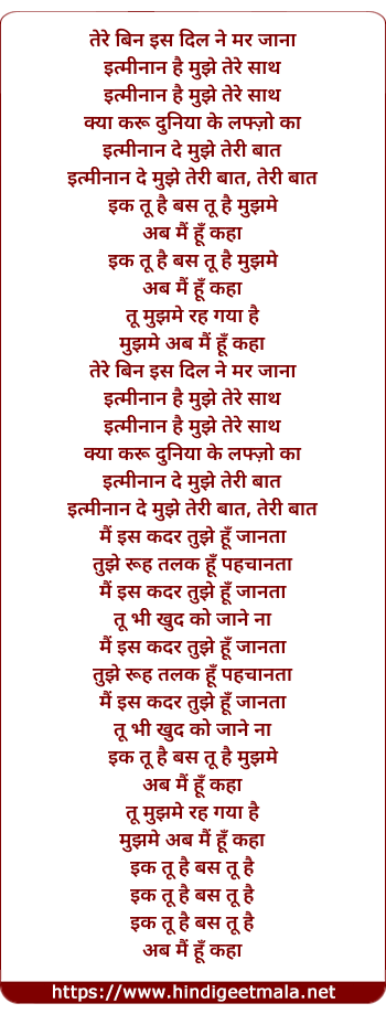 Lyrics of Ik Tu Hai, Bas Tu Hai - इक तू है, बस तू है