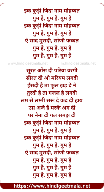 Lyrics of Ik Kudi Jida Nam Mohabbat - इक कुड़ी जिदा नाम मोहब्बत