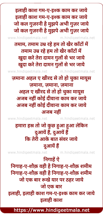 Lyrics of Ilaahi Kaash Gam E Ishq Kaam Kar Jaaye - इलाही काश गम-ए-इश्क काम कर जाये