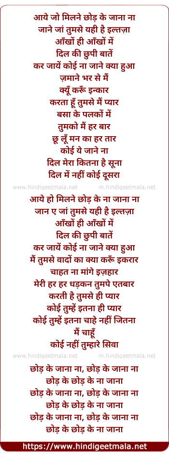 Lyrics of Iltijaa - आये जो मिलने छोड़ के जाना ना