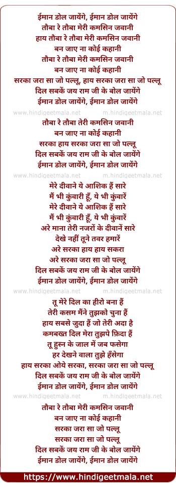 Lyrics of Imaan Dol Jaayenge - ईमान डोल जायेंगे