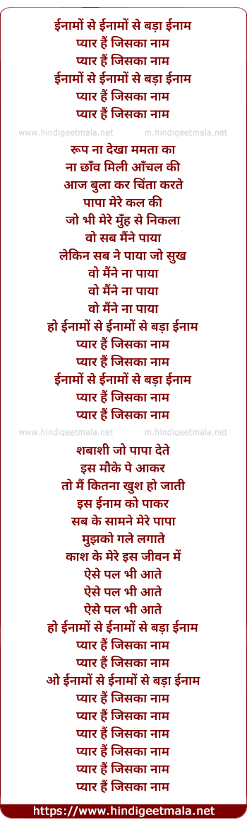 Poetic Translation - Lyrics of Inamo Se - ईनामों से