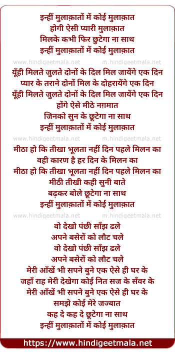 Lyrics of Inhee Mulakato Me Koi Mulakat - इन्हीं मुलाक़ातों में कोई मुलाक़ात