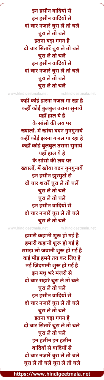 Lyrics of In Hasin Waadiyo Se - इन हसीन वादियों से