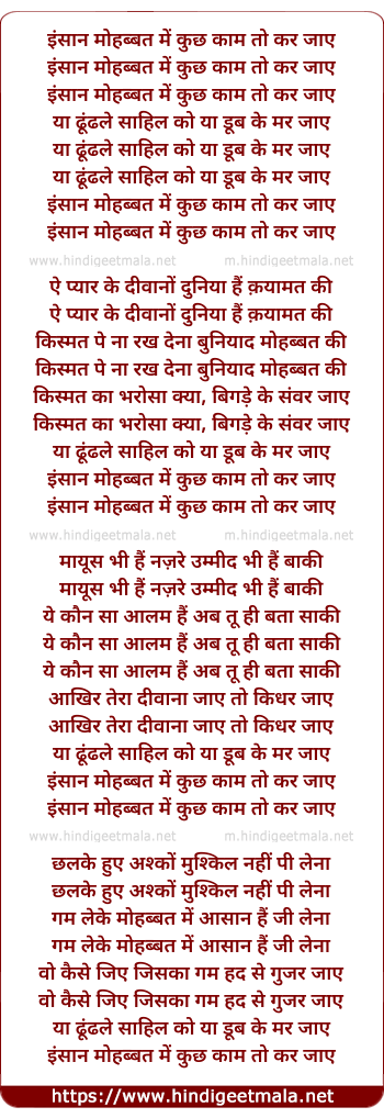 Lyrics of Insaan Mohabbat Me - इंसान मोहब्बत में