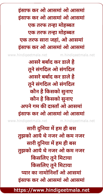Lyrics of Insaf Kar O Aasma - इंसाफ कर ओ आसमां