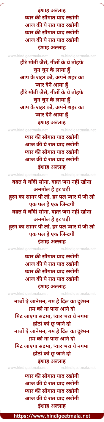 Lyrics of Insha Allah Aaj Ki Raat (Version 2) - इंशाह अल्लाह
