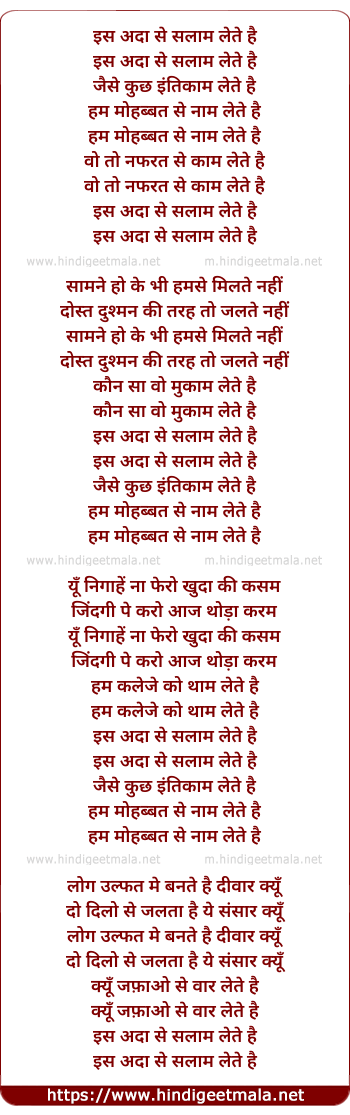 Lyrics of Is Ada Se Salaam Lete Hai - इस अदा से सलाम लेते है
