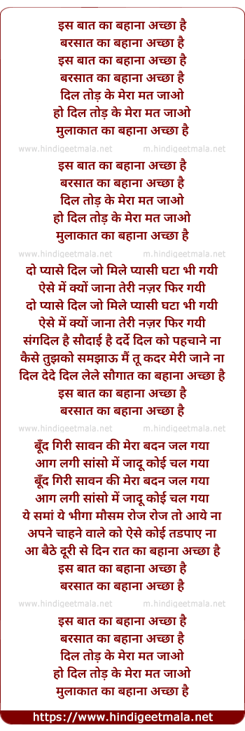Lyrics of Is Baat Ka Bahana Accha Hai - इस बात का बहाना अच्छा है