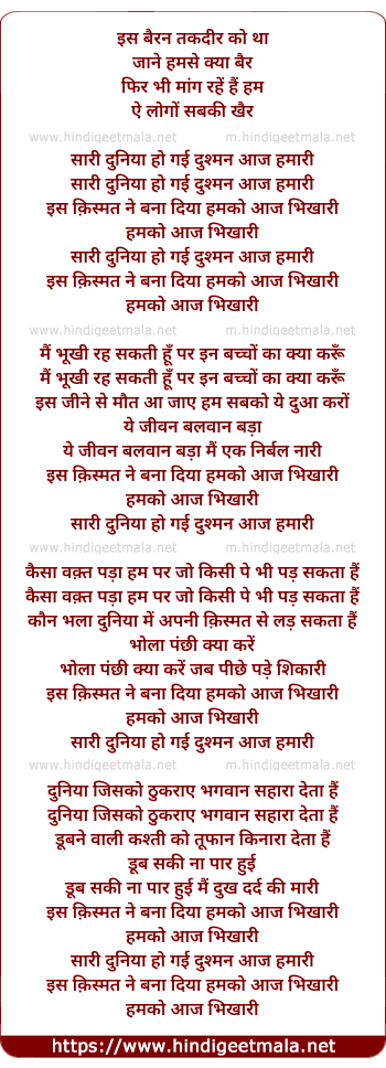 is kismat ne bana diya humko aaj bhikari