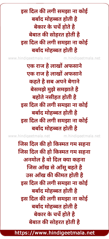 Lyrics of Is Dil Ki Lagi Samjha Naa Koi - इस दिल की लगी समझा ना कोई