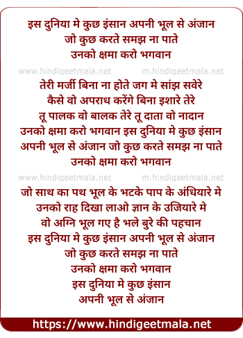 Lyrics of Is Duniya Me Kuch Insaan - इस दुनिया मे कुछ इंसान