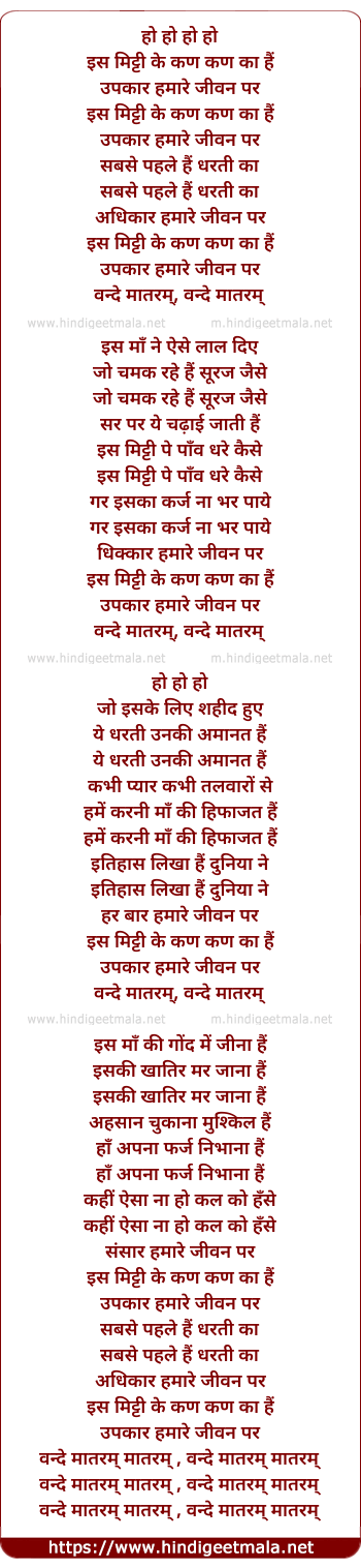 Lyrics of Is Mitti Ke Kan Kan Ka - इस मिट्टी के कण कण का