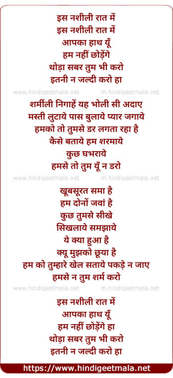 Poetic Translation - Lyrics of Is Nashili Raat Me