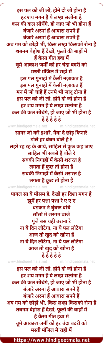 is pal ko ji lo, hone do jo hona hain
