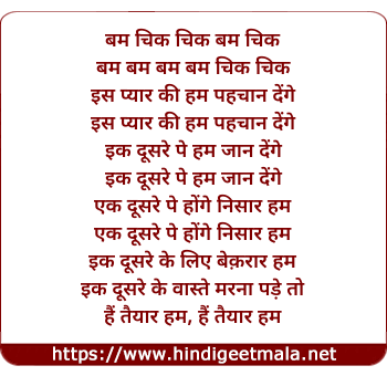 Lyrics of Is Pyar Ki Hum Pehchan Denge Ek Dusre Pe Hum - इस प्यार की हम पहचान देंगे एक दुसरे पे हम