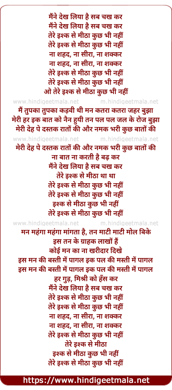 Poetic Translation - Lyrics of Isak Se Mitha (Remix) - मैंने देख लिया है सब चख कर