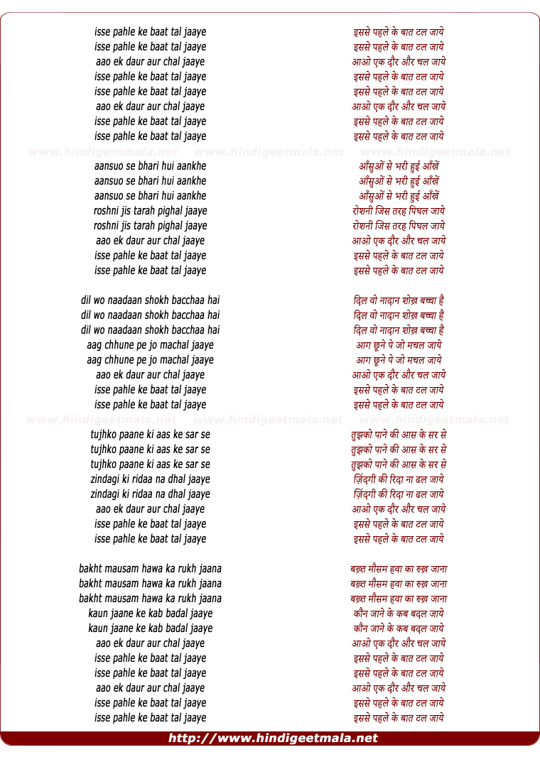 Lyrics of Isase Pahale Ke Baat Tal Jaaye - इससे पहले के बात टल जाये