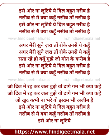 Lyrics of Ise Na Aur Lutiye Ye Dil Bahut Garib Hai - इसे और ना लूटिये ये दिल बहुत गरीब है