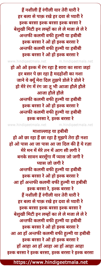 Lyrics of Ishq Barsa Re - इश्क बरसा रे