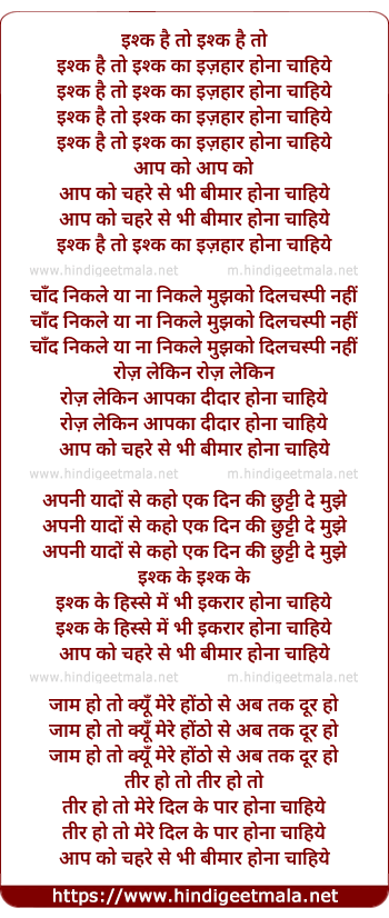 Lyrics of Ishq Hain To - इश्क है तो इश्क है तो