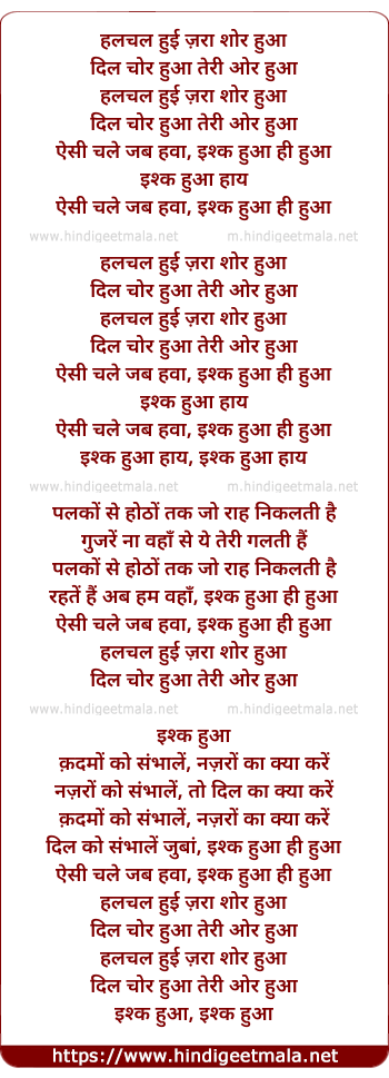 Lyrics of Ishq Hua Haaye - इश्क हुआ हाय