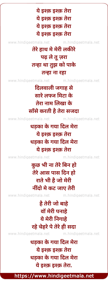 Lyrics of Ishq Ishq Teraa - इश्क इश्क तेरा