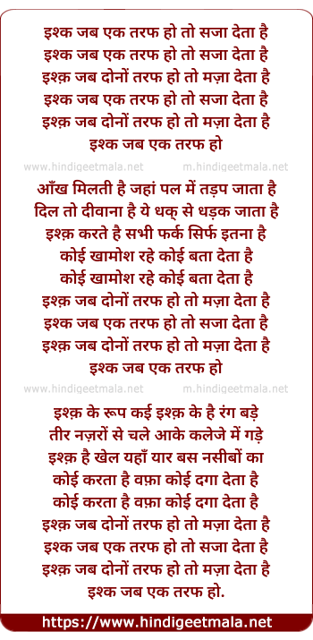 Lyrics of Ishq Jab Ek Taraf Ho (Female) - इश्क जब एक तरफ हो