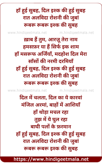 Lyrics of Ishq Kee Subah - हाँ हुई सुबह, दिल इश्क की हुई सुबह
