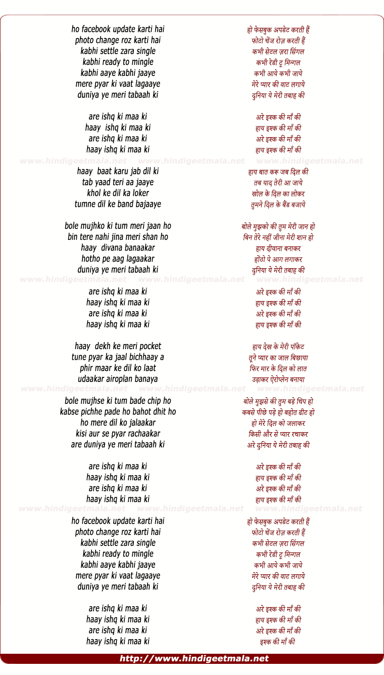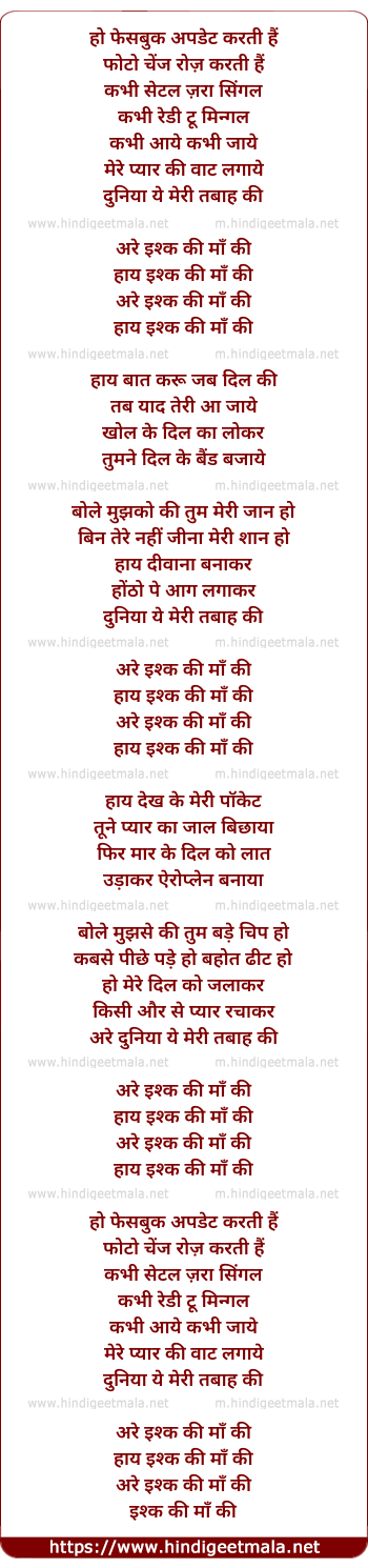 Lyrics of Ishq Ki Maa Ki - इश्क की माँ की