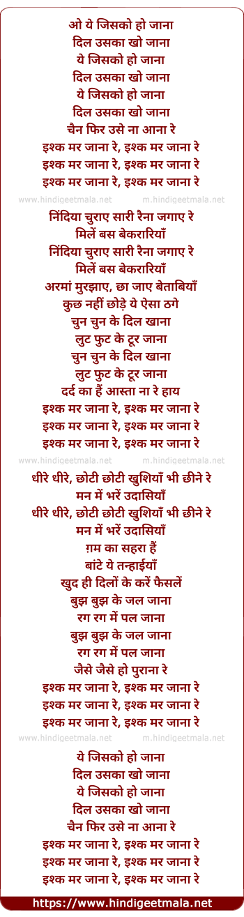 ishq mar jana re, ishq mar jana re