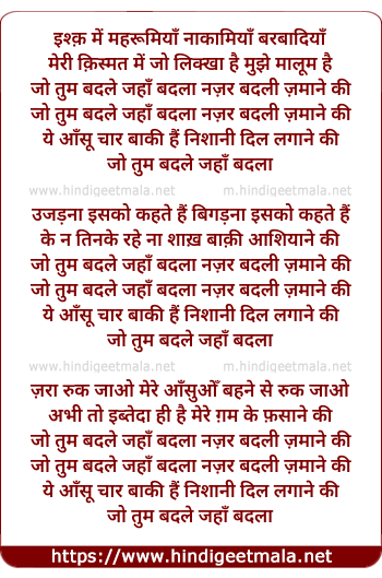 Lyrics of Ishq Mein Maharoomiyaan - इश्क़ में महरूमियाँ नाकामियाँ बरबादियाँ