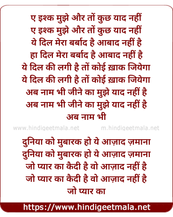 Lyrics of Ishq Mujhe Aur To Kuch Yaad Nahi - इश्क मुझे और तों कुछ याद नहीं