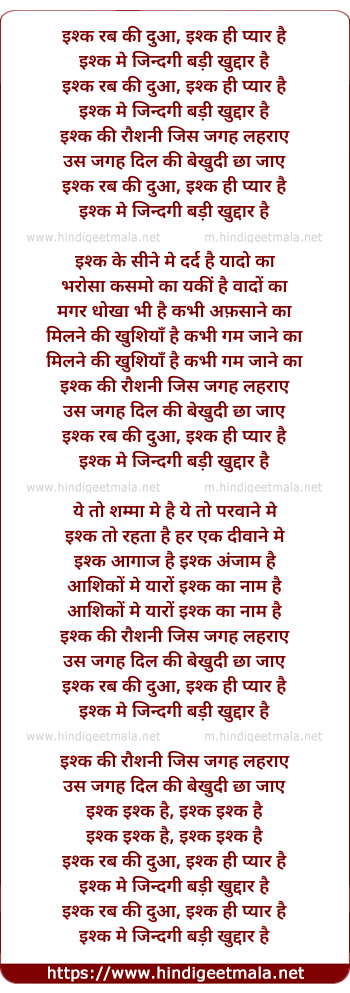 Lyrics of Ishq Rab Ki Dua - इश्क रब की दुआ