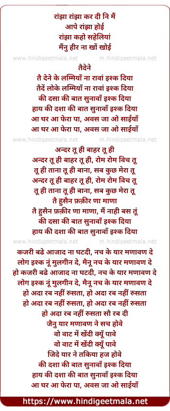 raanjha raanjha kar di ni main