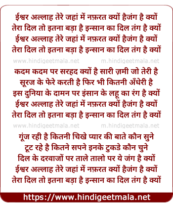 Lyrics of Iishvar Allah Tere Jahaan Men - ईश्वर अल्लाह तेरे जहां में