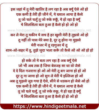 iss jahan me tu meri khatir hai lag raha hai ab kyun aise o ho