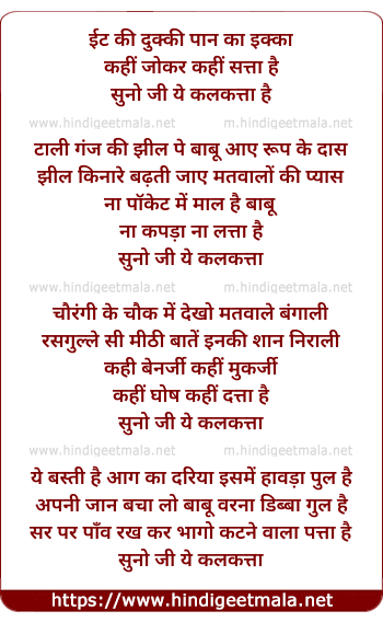 Poetic Translation - Lyrics of Iit Ki Dukki Paan Kaa Ikkaa - ईट की दुक्की पान का इक्का
