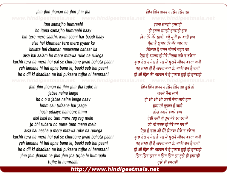 jhin jhin jhanan na jhin jhin jha tujhe hi humraahi