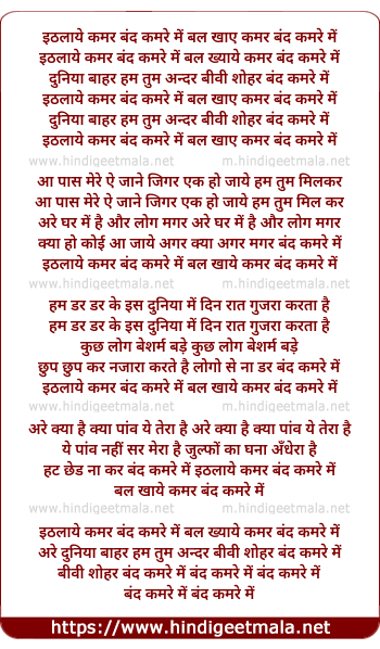 Lyrics of Ithlaye Kamar Band Kamre Me, Balkhaye Kamar Band Kamre Me - इठलाये कमर बंद कमरे में बल खाए कमर बंद कमरे में