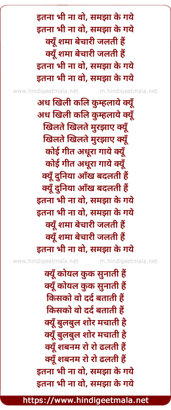 Lyrics of Itna Bhi Na Wo Samjha Ke Gaye - इतना भी ना वो, समझा के गये