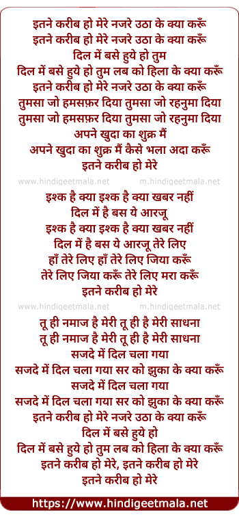 Lyrics of Itne Kareeb Ho Mere - इतने करीब हो मेरे नजरे उठा के क्या करूँ