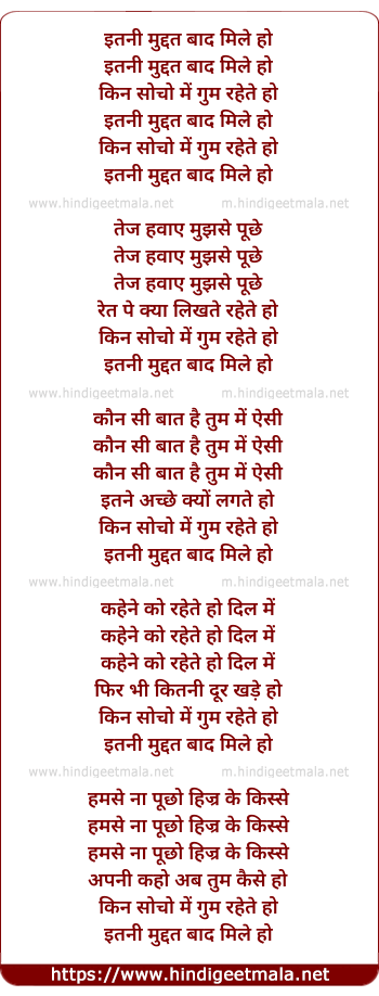 Lyrics of Itnee Muddat Bad Mile Ho - इतनी मुद्दत बाद मिले हो