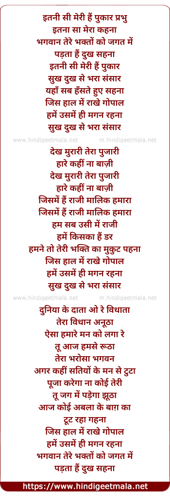 Lyrics of Itni Si Hai Meri Pukar - इतनी सी मेरी हैं पुकार