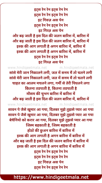 Lyrics of Its Rain Rain, Its Rain Rain - इट्स रेन रेन इट्स रेन रेन
