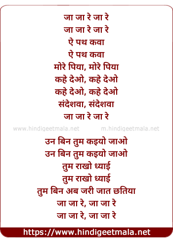 Lyrics of Ja Ja Re Ja Re - जा जा रे जा रे
