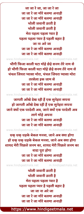 Lyrics of Ja Ja Re Ja - जा जा रे जा