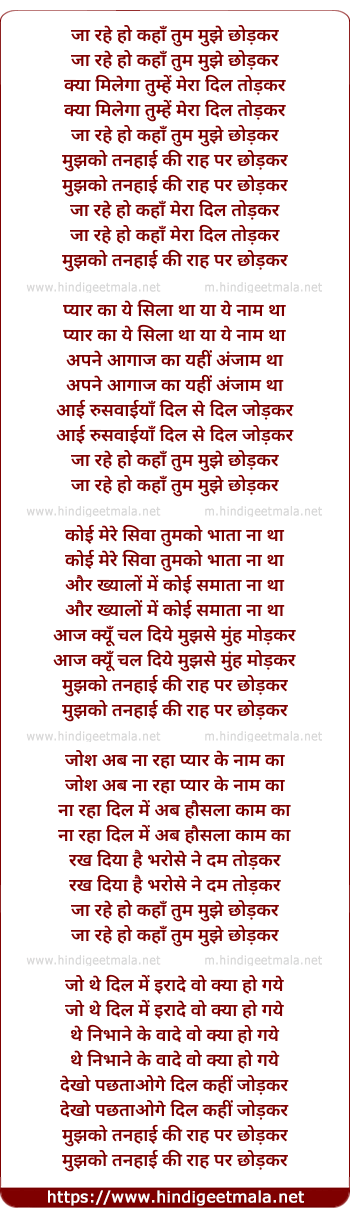 Lyrics of Ja Rahe Ho Kahan - जा रहे हो कहाँ