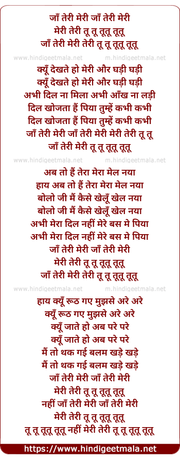 Lyrics of Jaa Teri Meri Teri Tu Tu Tu - जाँ तेरी मेरी तेरी तू तू तू