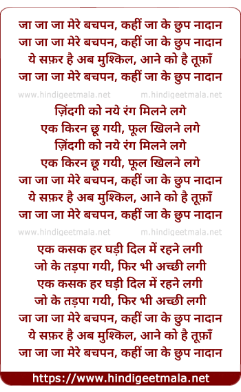 Lyrics of Jaa Jaa Jaa Mere Bachapan, Kahin Jaa Ke Chhup Naadaan - जा जा जा मेरे बचपन, कहीं जा के छुप नादान